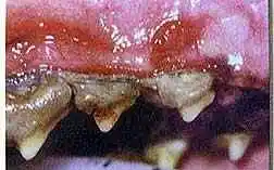 Imagine how your teeth would feel you could not brush them. The tarter would quickly build up. Decay would begin on one or more teeth. The gums would become inflamed and sore. As the decay advances it eats away at your teeth and eats down to the roots. (ouch) Long before this point, us humans would have run to the dentist because of the pain. But a Sheltie cannot tell you what hurts; so it continues to go unnoticed. Soon, the decaying tooth (or teeth) and gums will become infected. Once the infection gets a good hold in your Shelties mouth, THEN it starts to smell bad. An infected mouth can smell terrible!