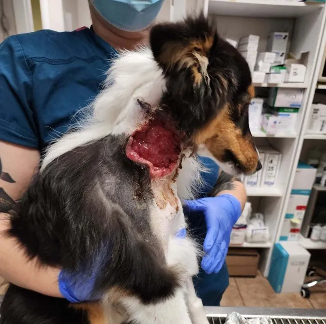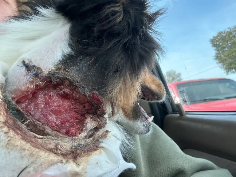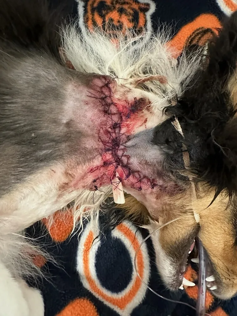 Gizmo has endured two (2) surgeries to close his wounds. He will be on antibiotics for some time due to the level of infection that he had. It will be a long road to recovery but with the Animal Healthcare Clinic taking care of him we know that he is in the best of hands. The vets and all the staff have gone way out of their way to help us save this sweet soul.