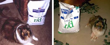 When a Sheltie gets to be as obese as Cindy was, it might be medically necessary to put him/her on a food such as Hills Prescription Diet r/d. This food is basically ALL fiber, so your dog won’t absorb the food or calories. The result is weight loss & a LOT of poop.