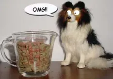 Rule of thumb for feeding your dog: There are no rules! Every dog has a different activity level and lifestyle – just like us humans. What it all boils down to is this…..if your Sheltie is fat, your Sheltie is eating too much or has a health problem.